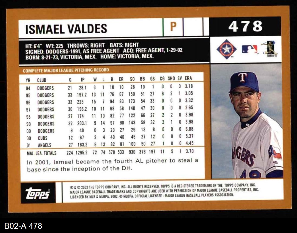 2002 Topps #478 Ismael Valdes 8 - NM/MT