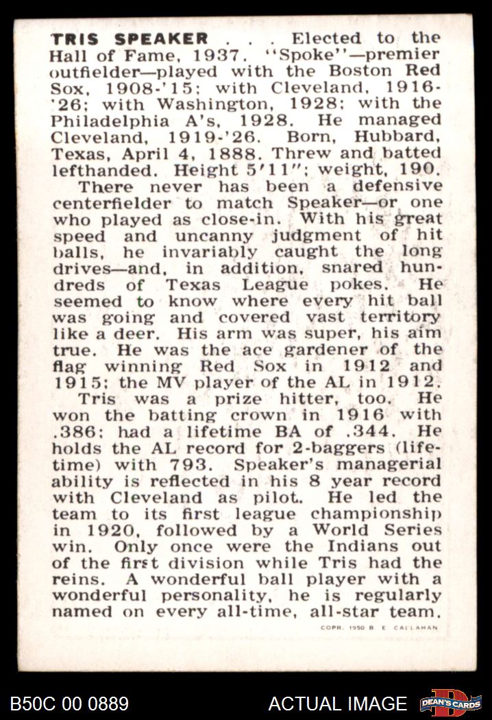 1950 Callahan Hall of Fame Tris Speaker 7 - NM