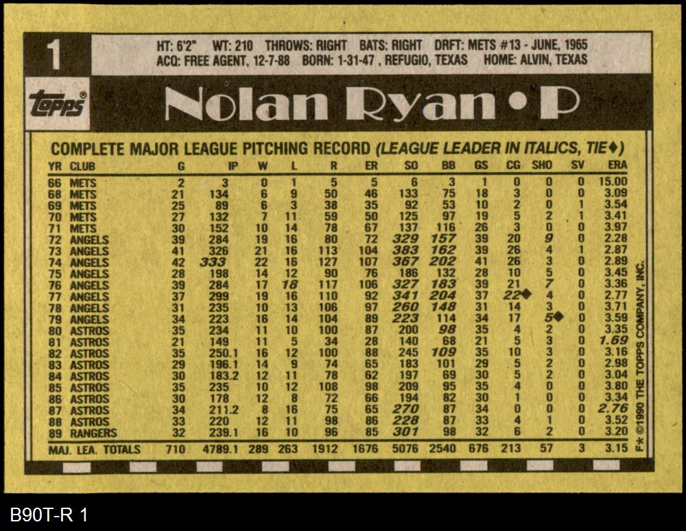 1990 Topps #1 Nolan Ryan 8 - NM/MT