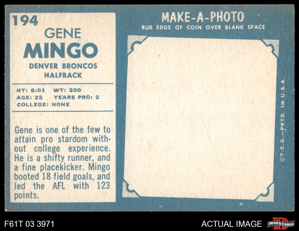 1961 Topps Football (1,358 available)1961 Topps Broncos (59 available)