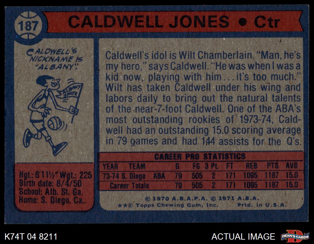 1974 Topps #187 Caldwell Jones 6 - EX/MT