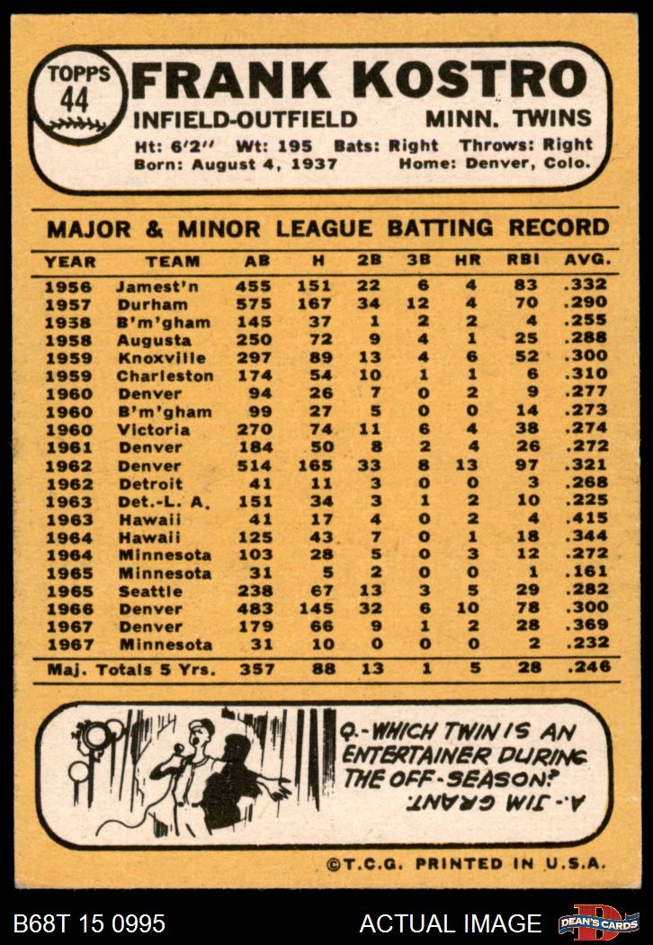 1968 Topps #44 A Frank Kostro 6 - EX/MT