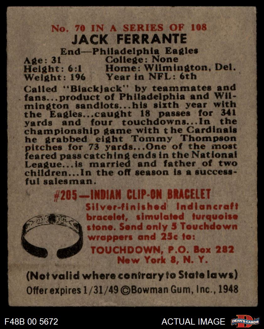 1948 Bowman #70 Jack Ferrante 4 - VG/EX