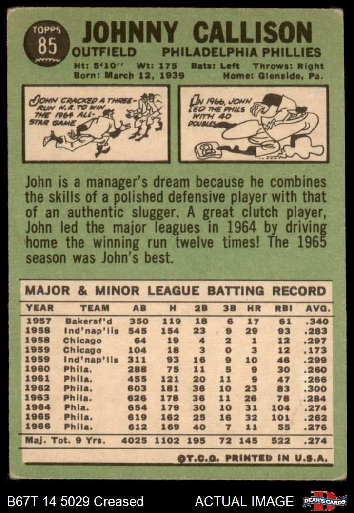 1967 Topps #85 Johnny Callison