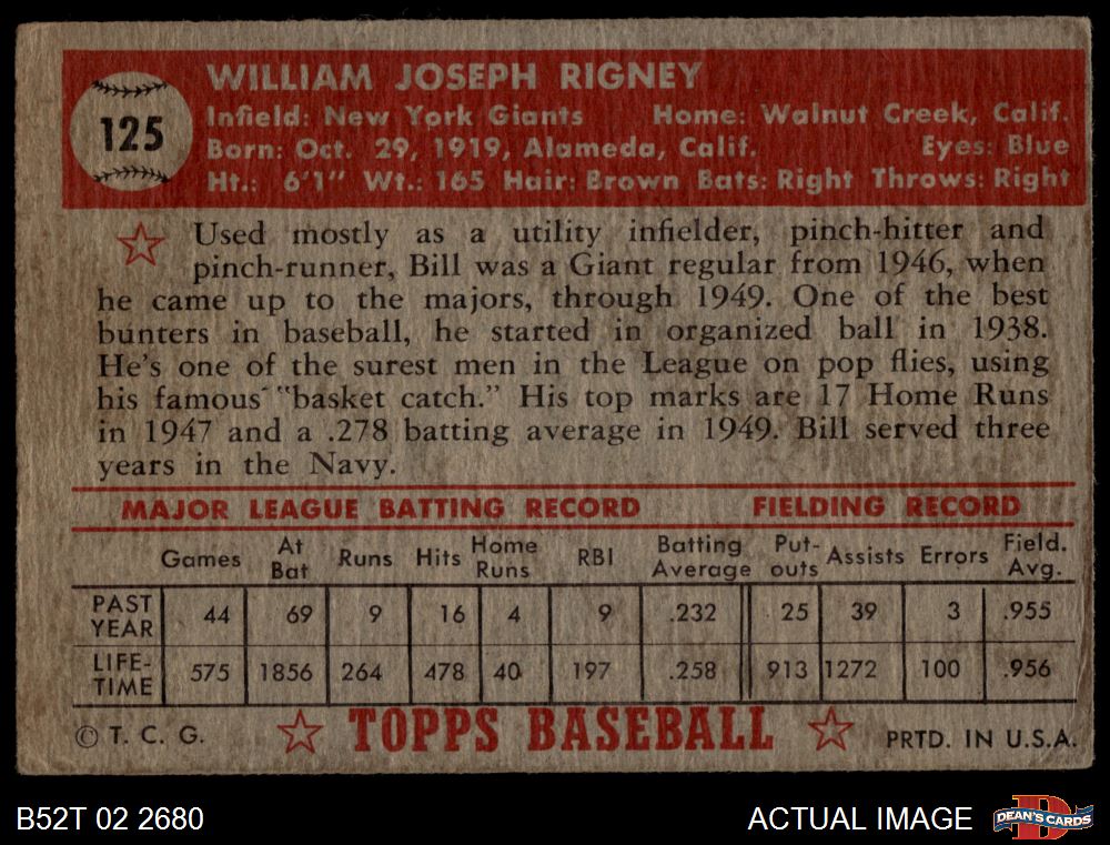 1952 Topps #125 Bill Rigney 2 - GOOD