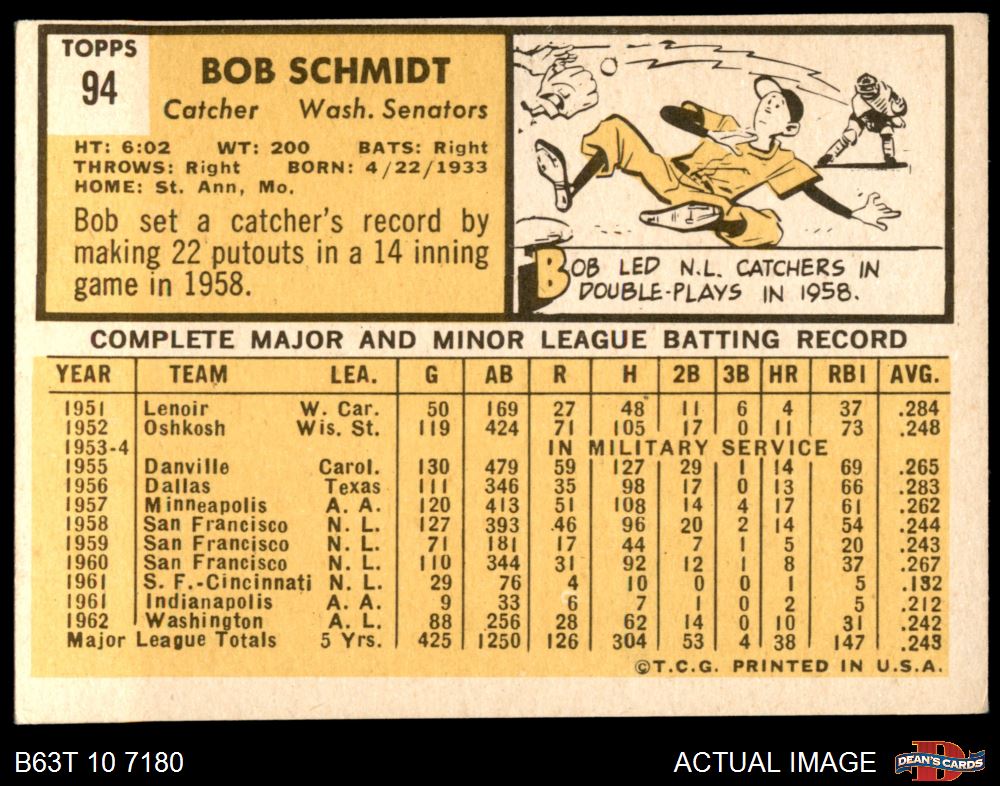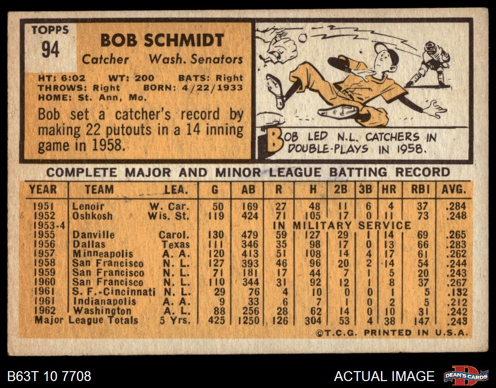 1963 Topps #94 Bob Schmidt 2 - GOOD