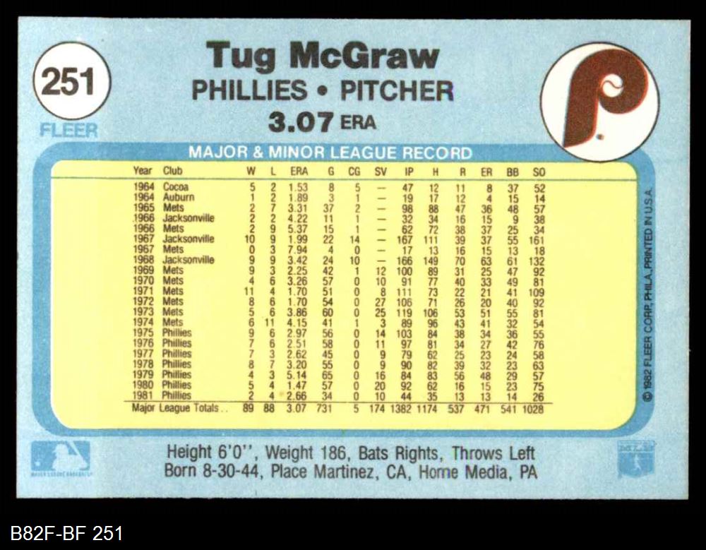 1982 Fleer #251 Tug McGraw