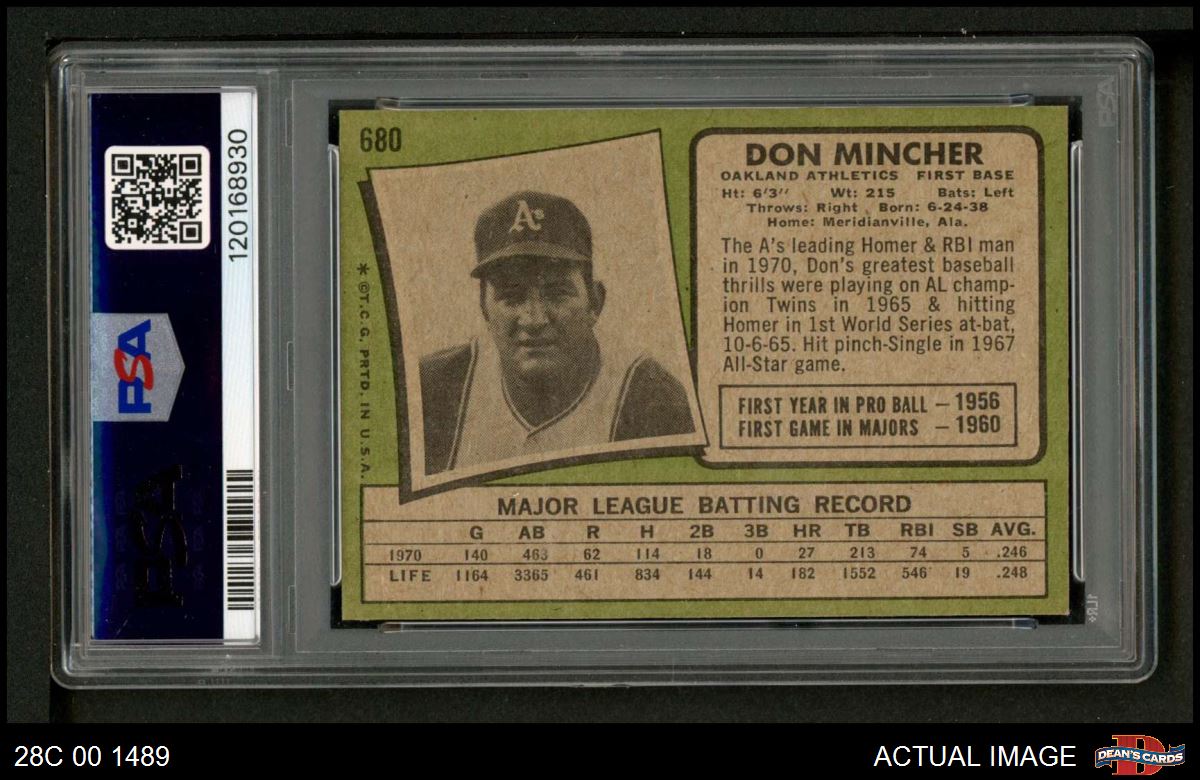 1971 Topps #680 Don Mincher PSA 7 - NM