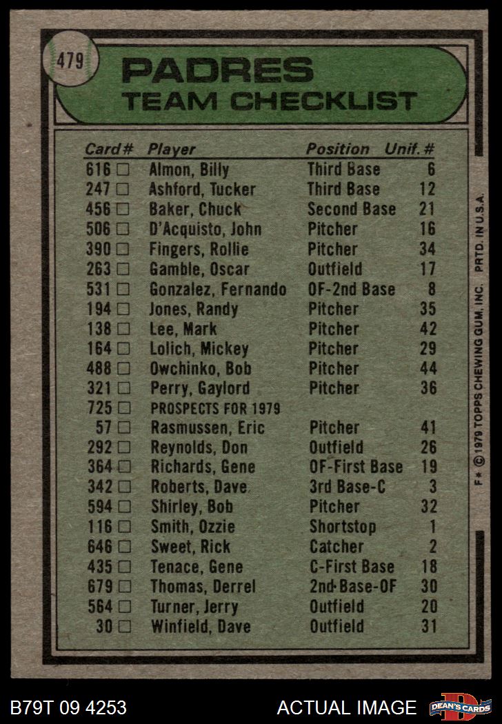 1979 Topps #479 Padres Team Checklist