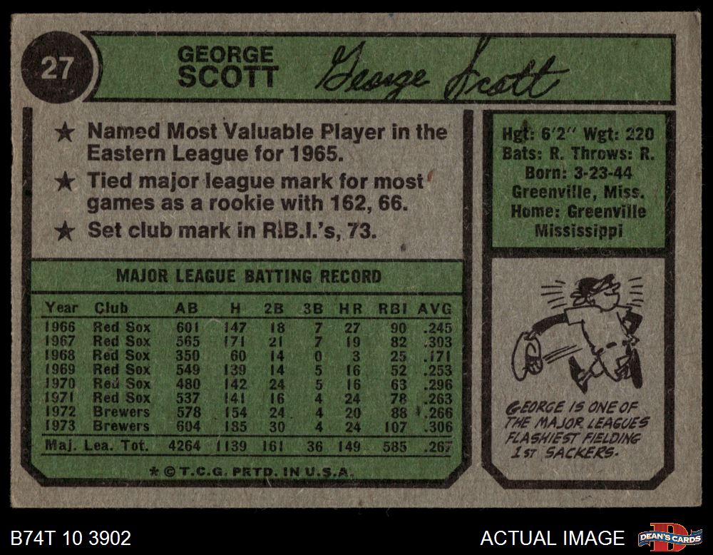 1974 Topps #27 George Scott 3 - VG