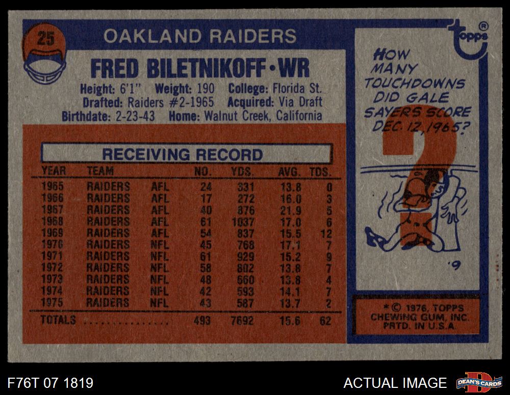 1976 Topps #25 Fred Biletnikoff 5 - EX