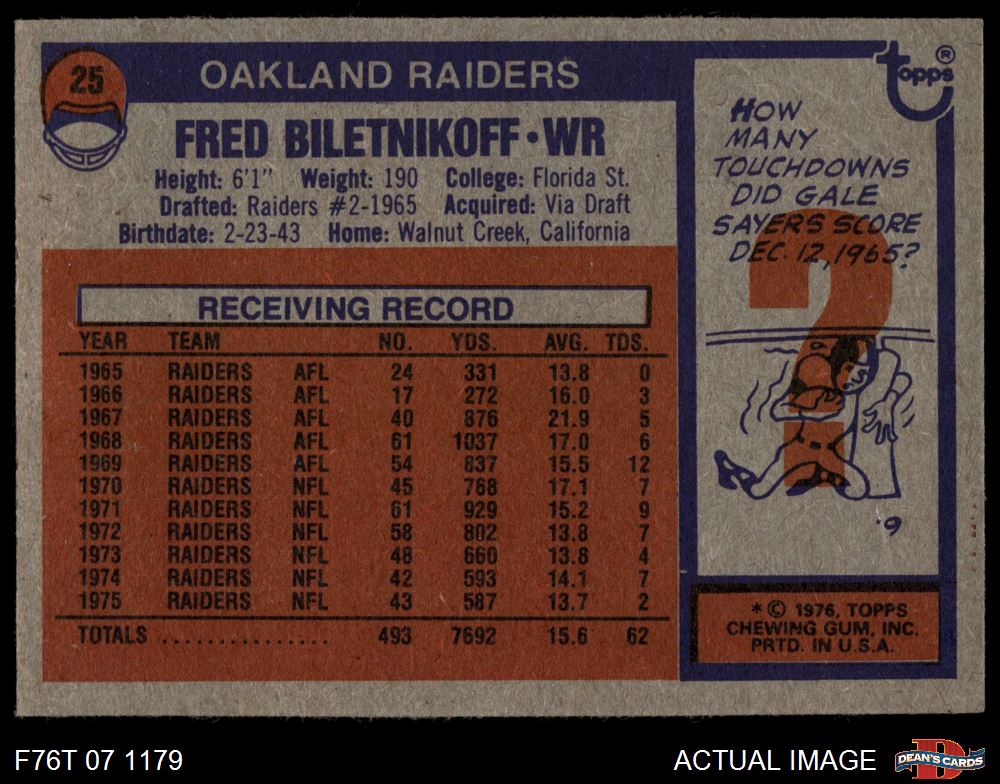 1976 Topps #25 Fred Biletnikoff 6 - EX/MT