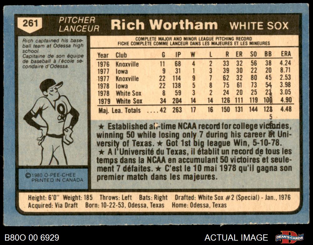 1980 O-Pee-Chee #261 Rich Wortham