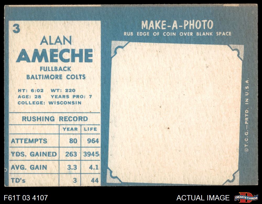 1961 Topps #3 Alan Ameche 2 - GOOD