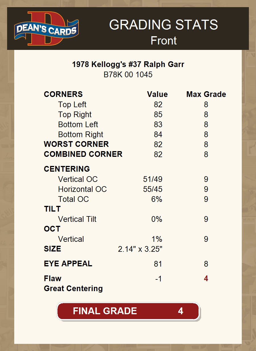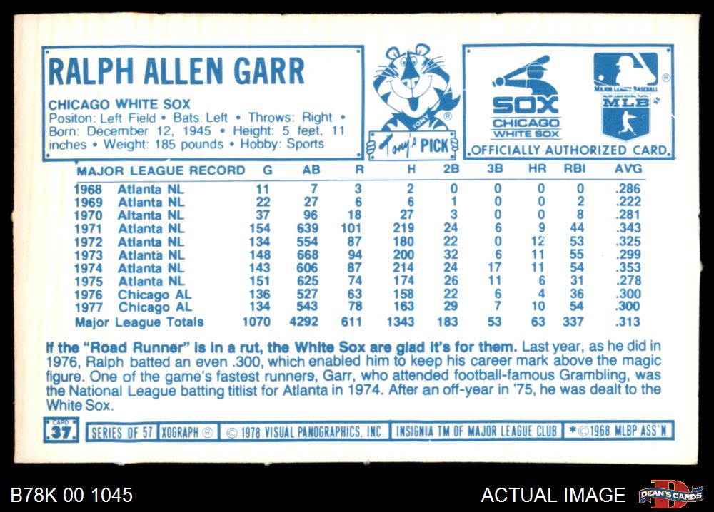 1978 Kellogg's #37 Ralph Garr 4 - VG/EX