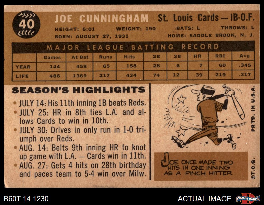 1960 Topps #40 Joe Cunningham 3 - VG