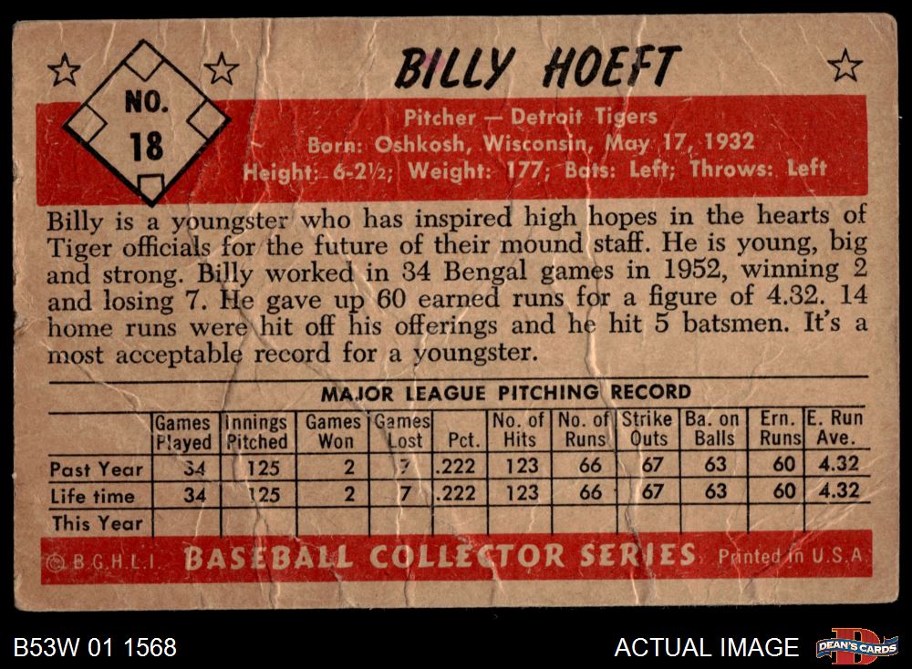 1953 Bowman B&W #18 Billy Hoeft AUTHENTIC