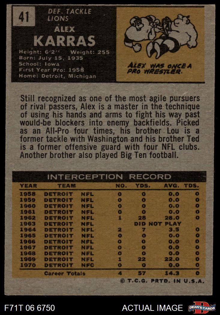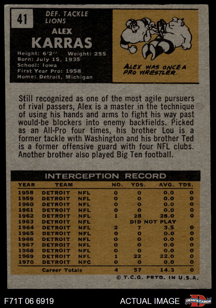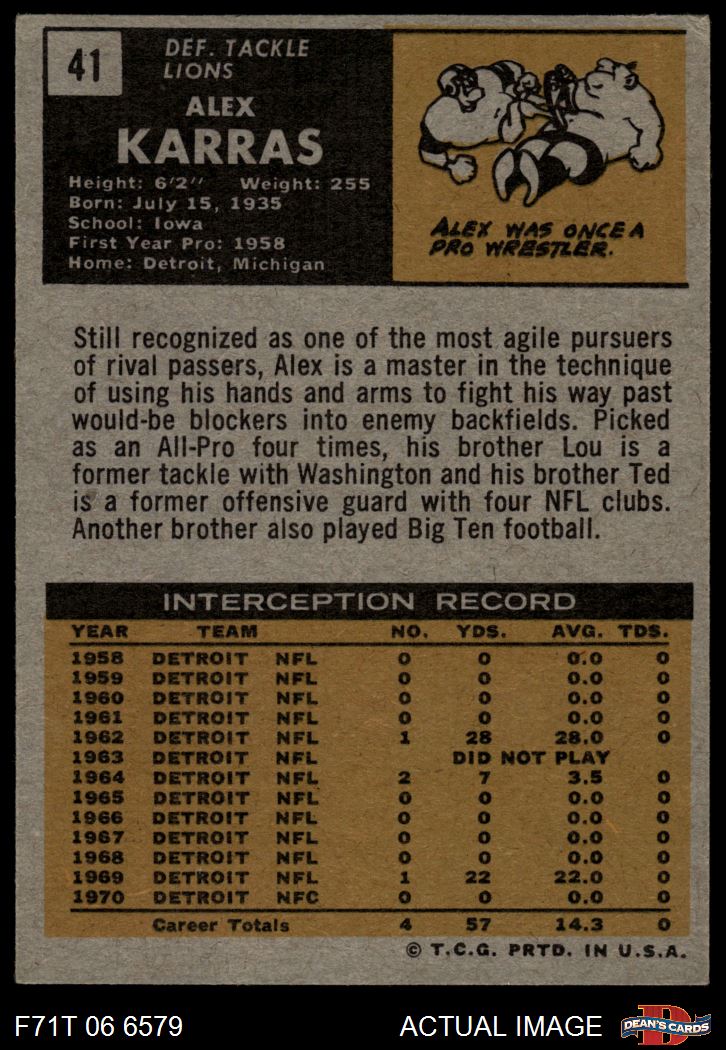 1971 Topps #41 Alex Karras 4 - VG/EX