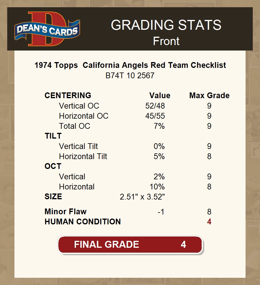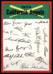 1974 Topps Red Team Checklist California Angels Red Team Checklist