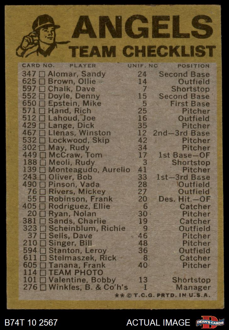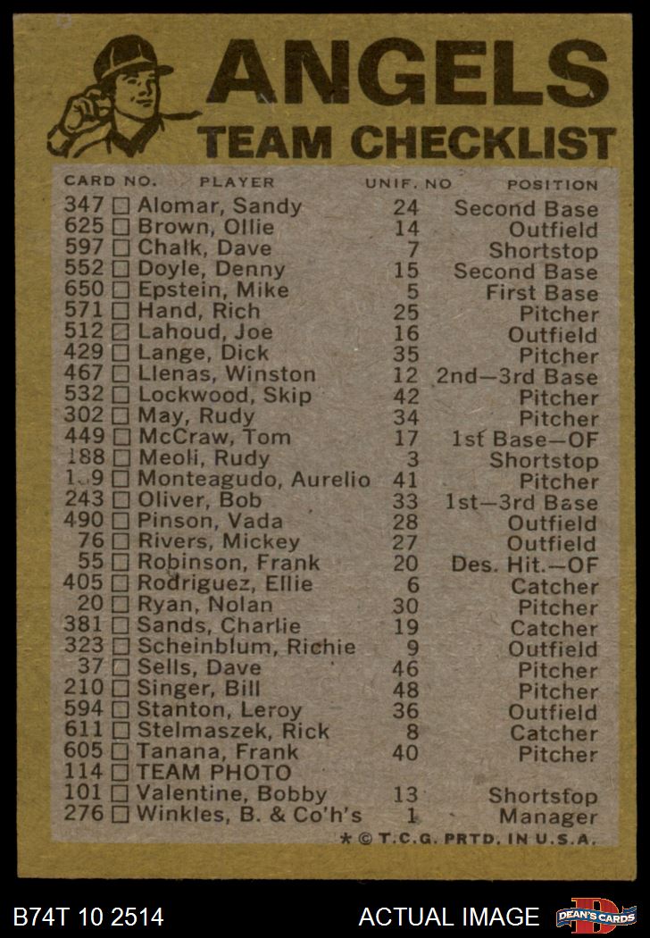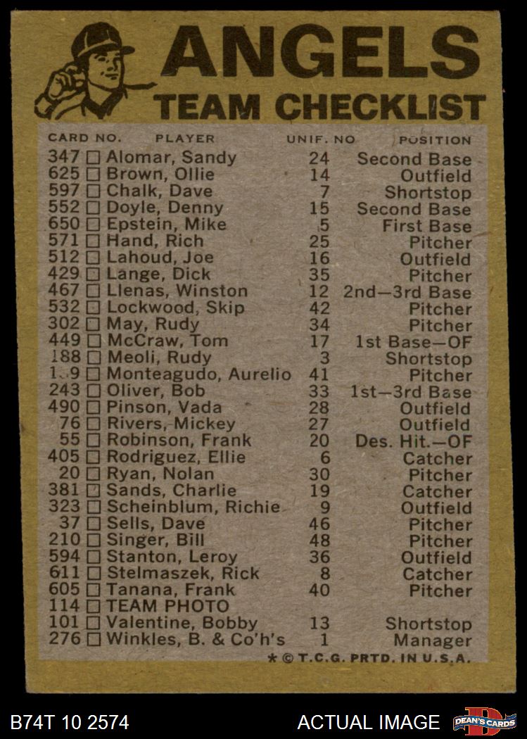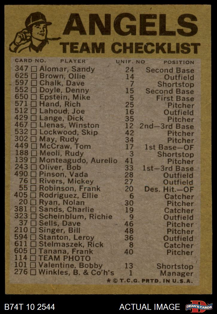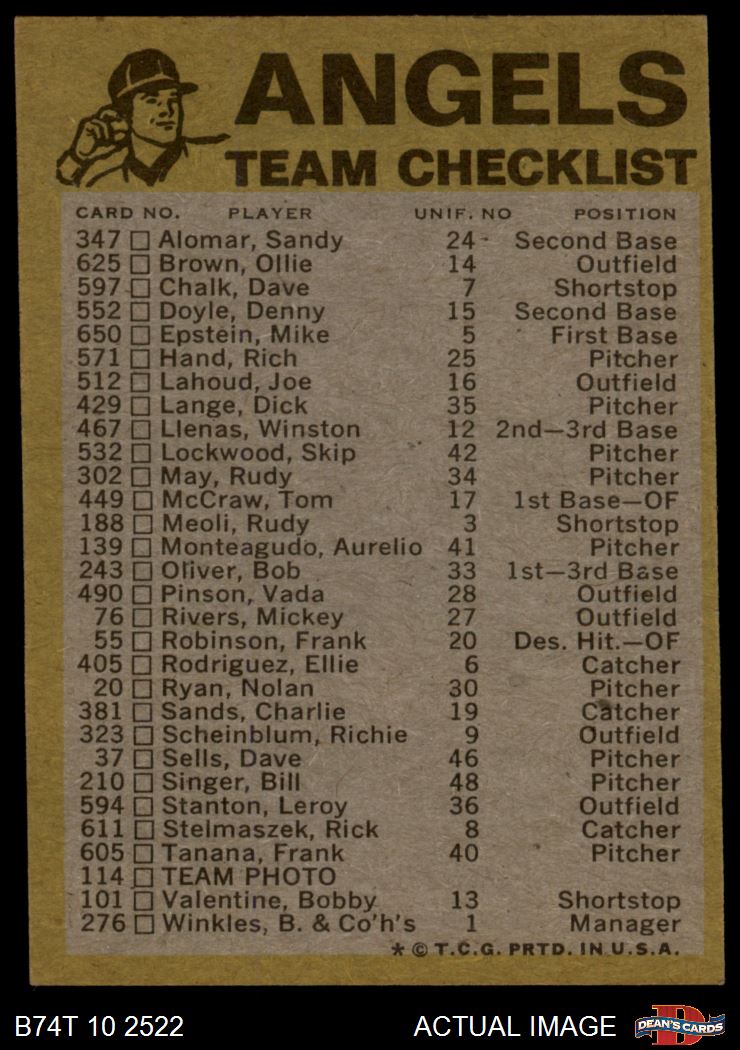 1974 Topps Baseball Cards (18,001 available)1974 Topps Red Team Checklist Angels (24 available)