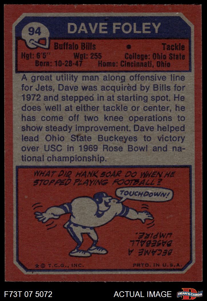 1973 Topps #94 Dave Foley 8 - NM/MT