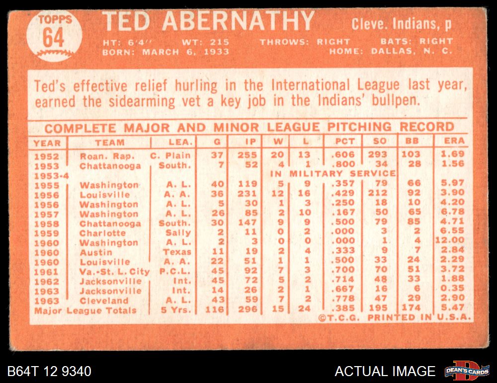 1964 Topps #64 Ted Abernathy 1.5 - FAIR