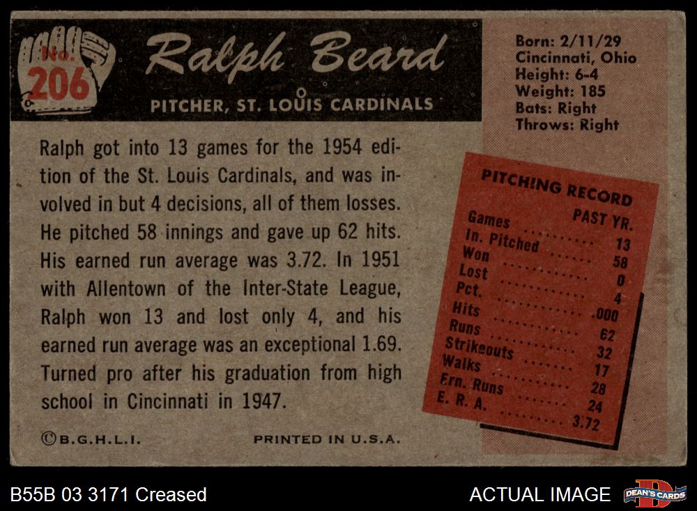 1955 Bowman #206 Ralph Beard 3 - VG