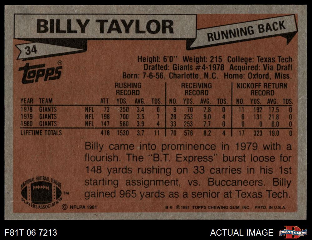 1981 Topps #34 Billy Taylor 4 - VG/EX