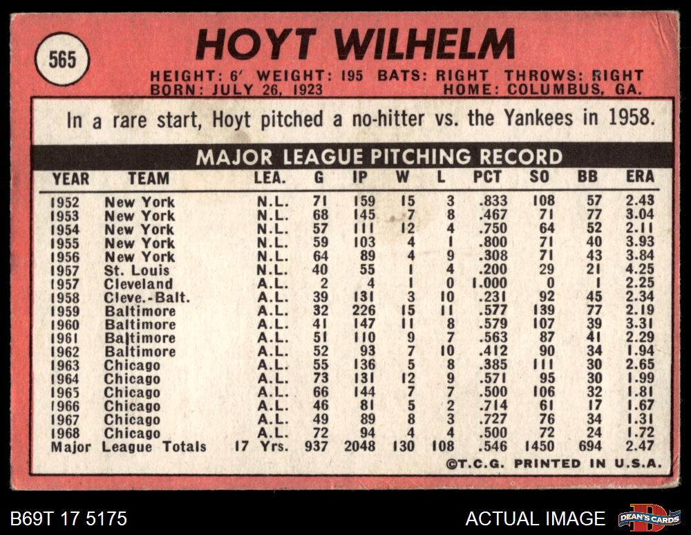 1969 Topps #565 Hoyt Wilhelm 1.5 - FAIR