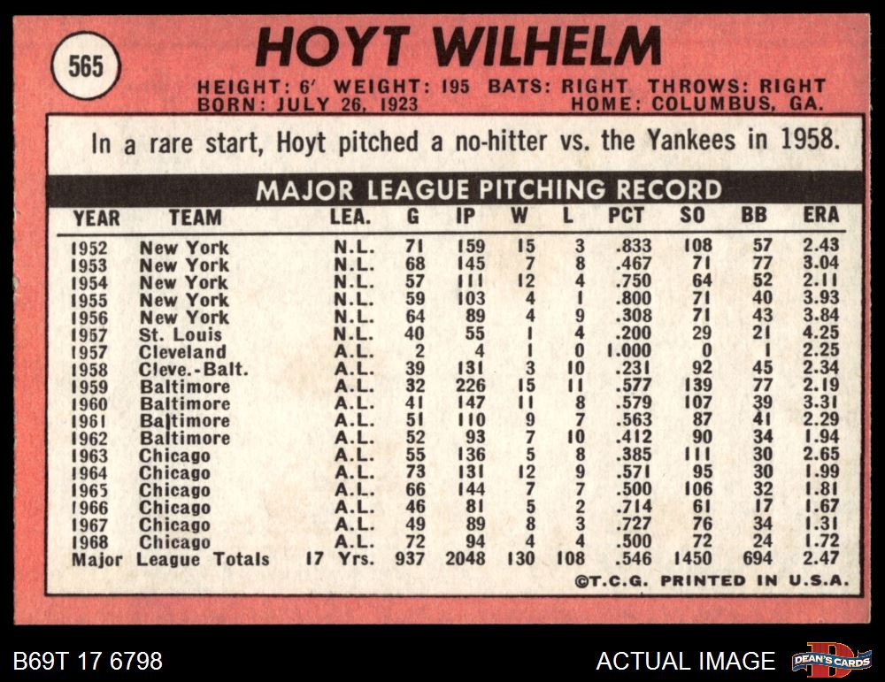 1969 Topps #565 Hoyt Wilhelm