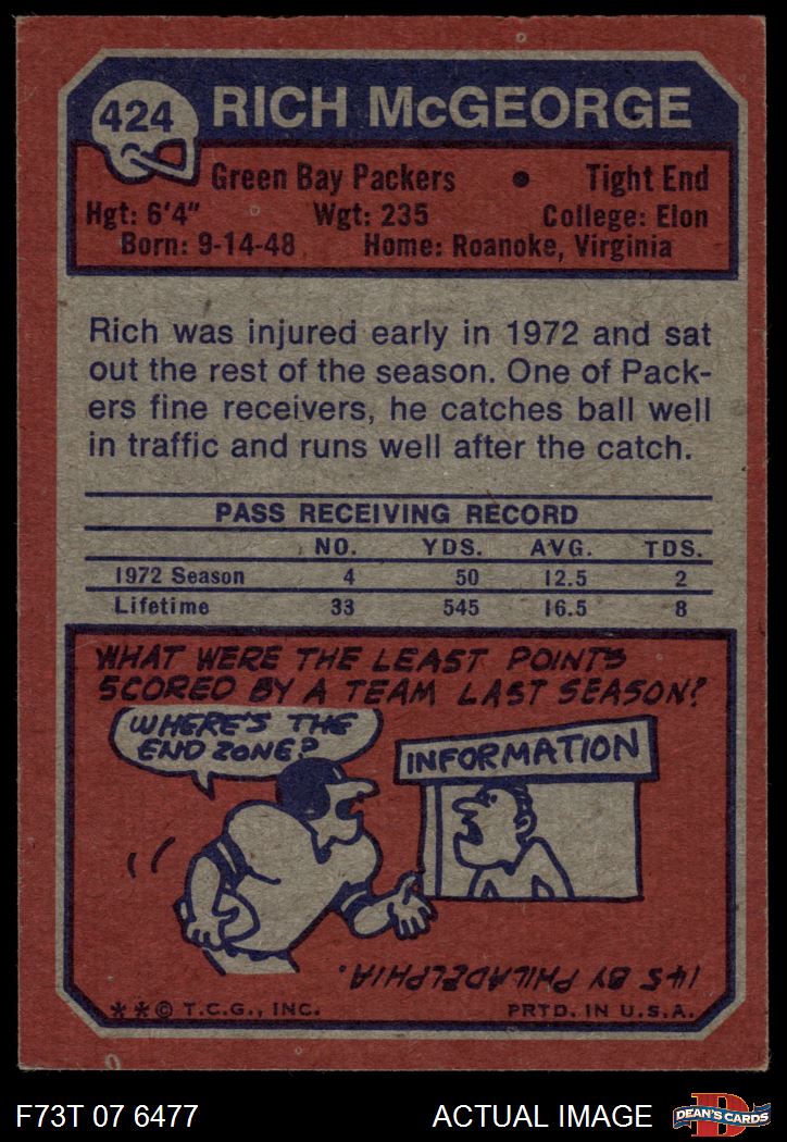 1973 Topps #424 Rich McGeorge 6 - EX/MT