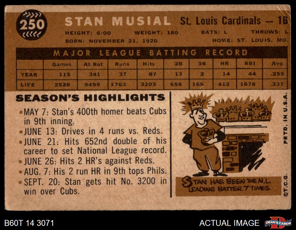 1960 Topps #250 Stan Musial Front Thumbnail