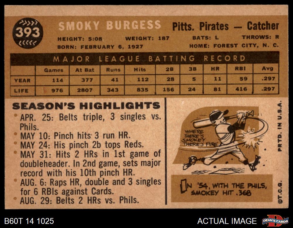 1960 Topps #393 Smoky Burgess 4 - VG/EX