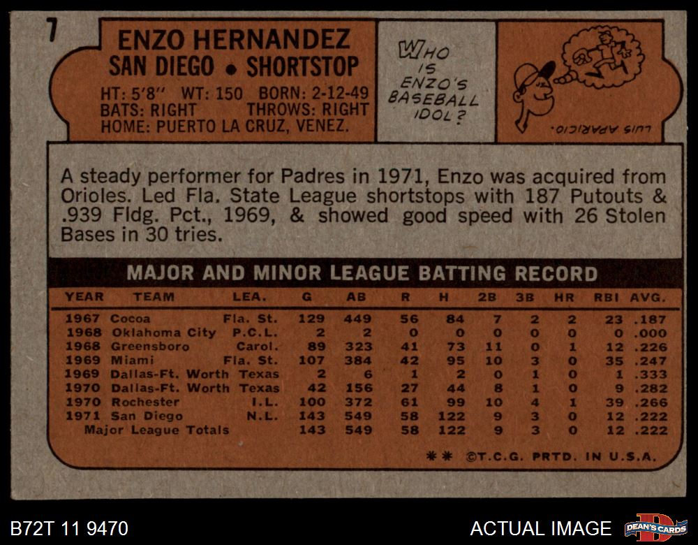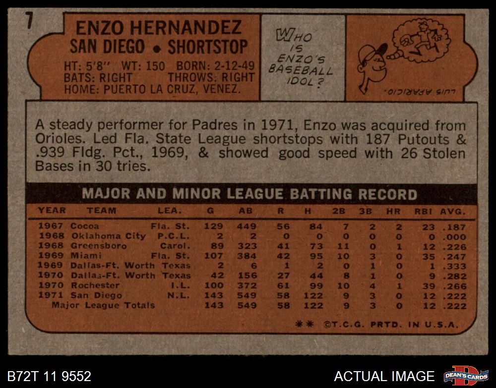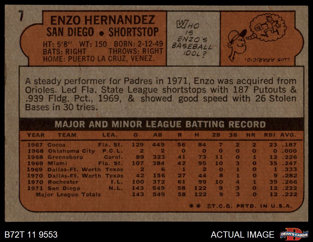 1972 Topps #7 Enzo Hernandez 4 - VG/EX