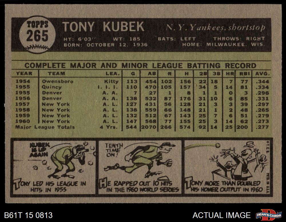 1961 Topps #265 Tony Kubek 6 - EX/MT