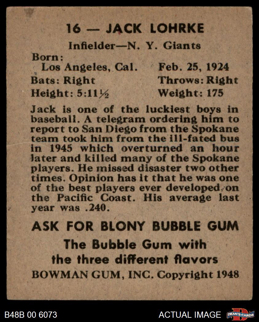 1948 Bowman #16 Jack Lohrke 4 - VG/EX