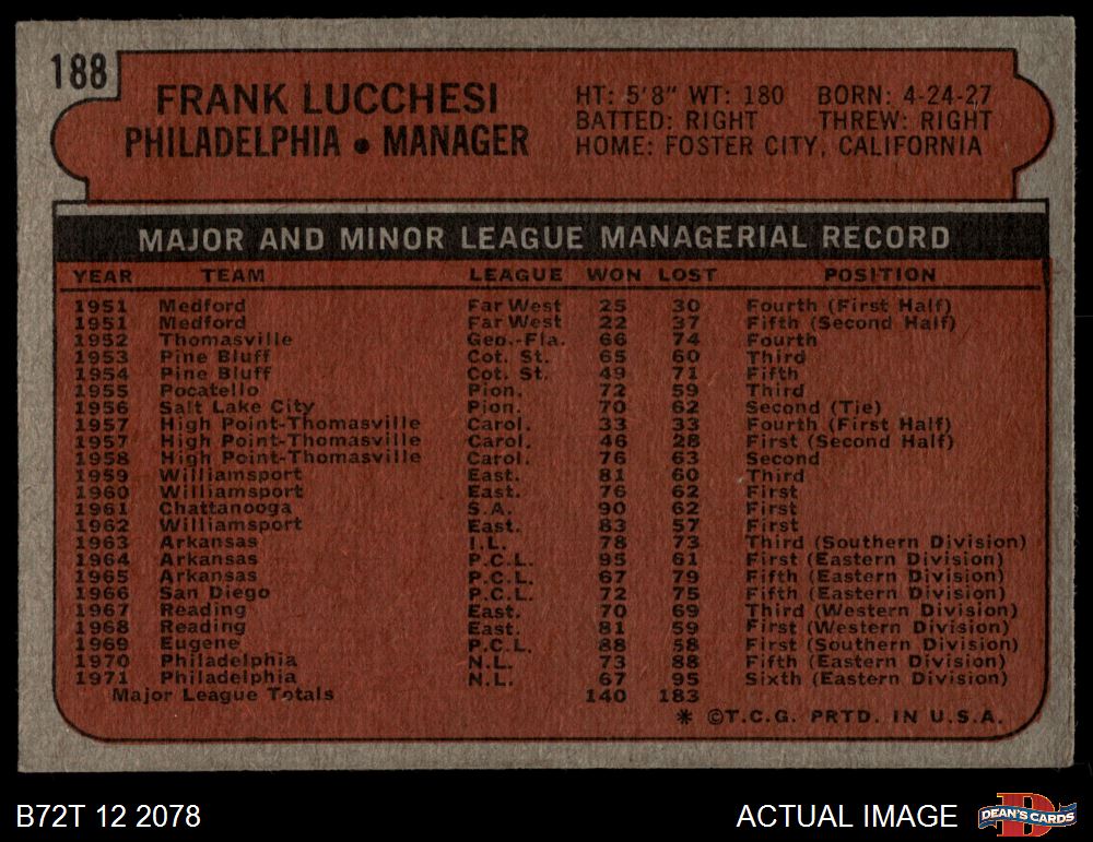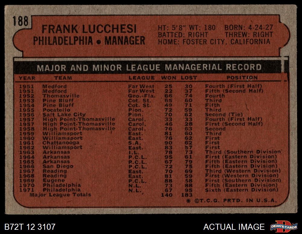 1972 Topps #188 Frank Lucchesi 2 - GOOD