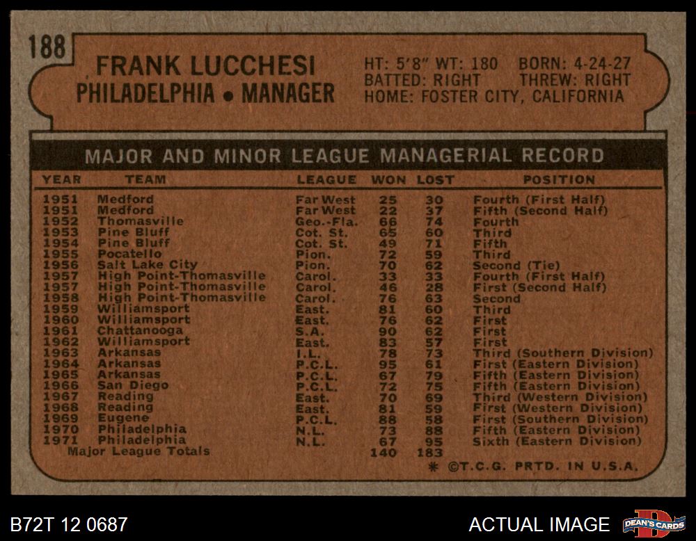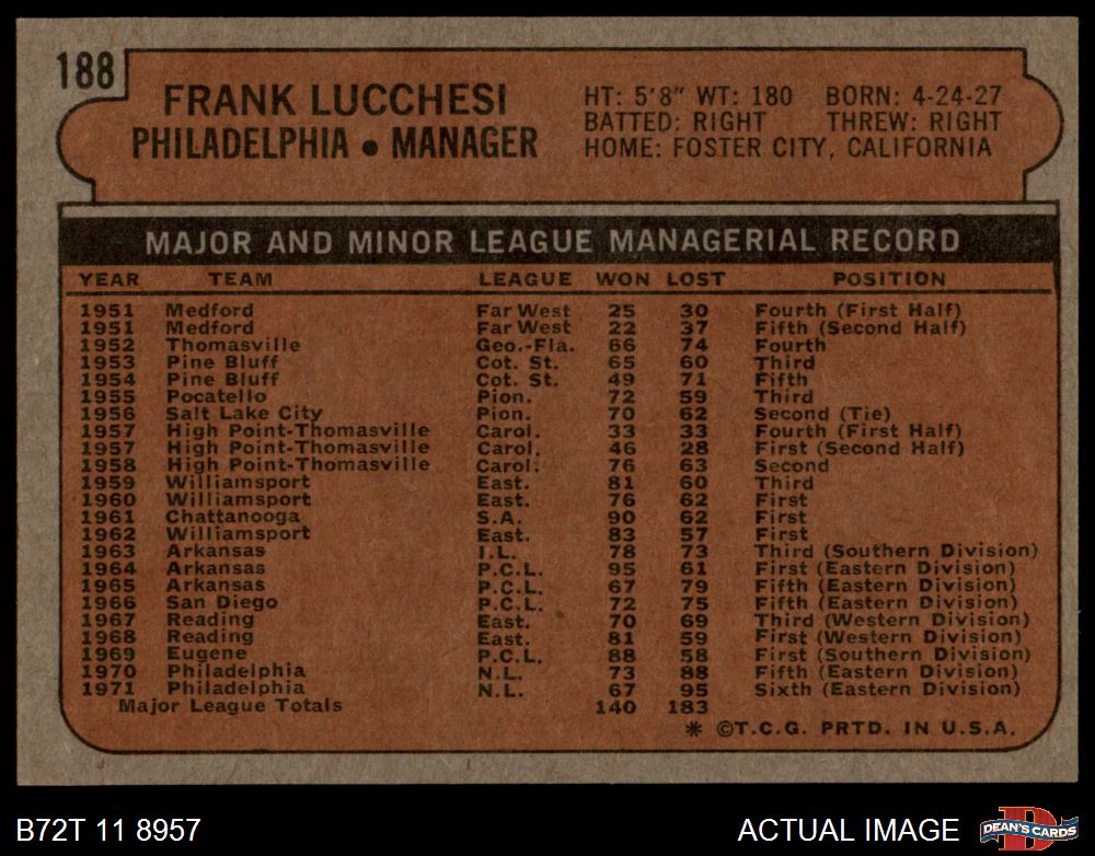 1972 Topps #188 Frank Lucchesi 6 - EX/MT