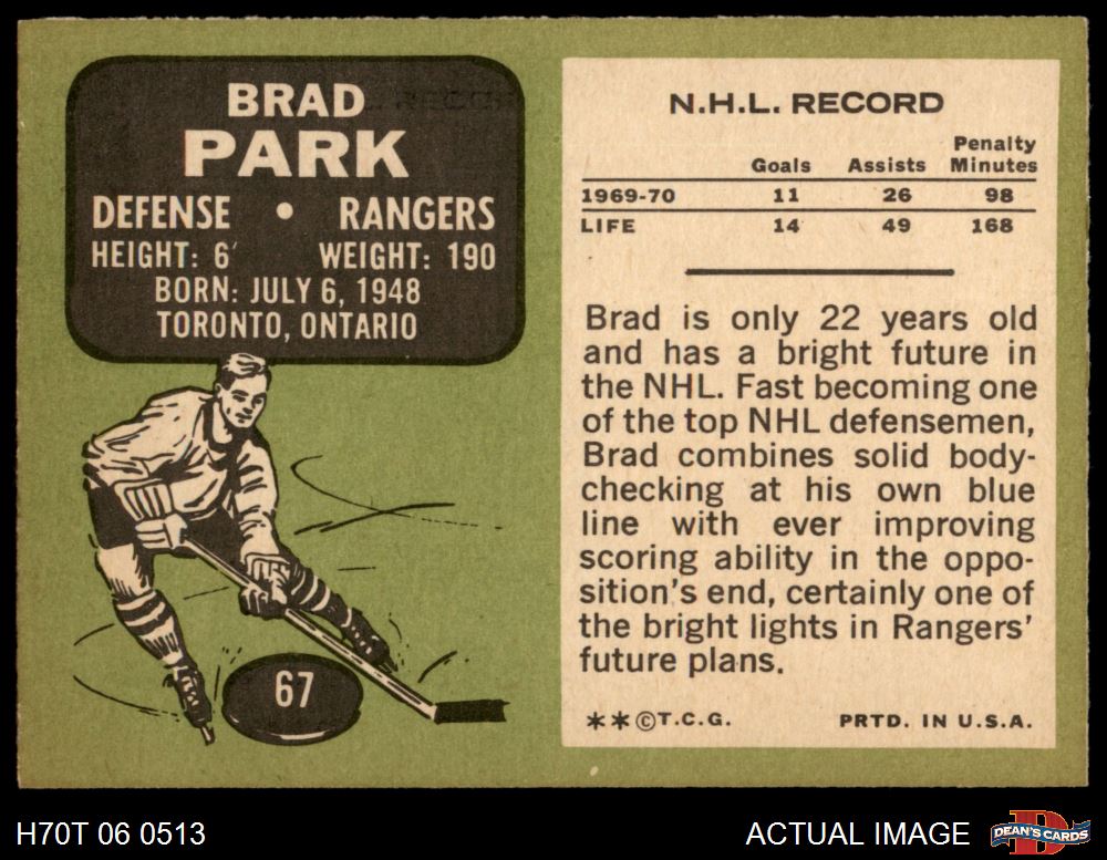 1970 Topps #67 Brad Park 4 - VG/EX