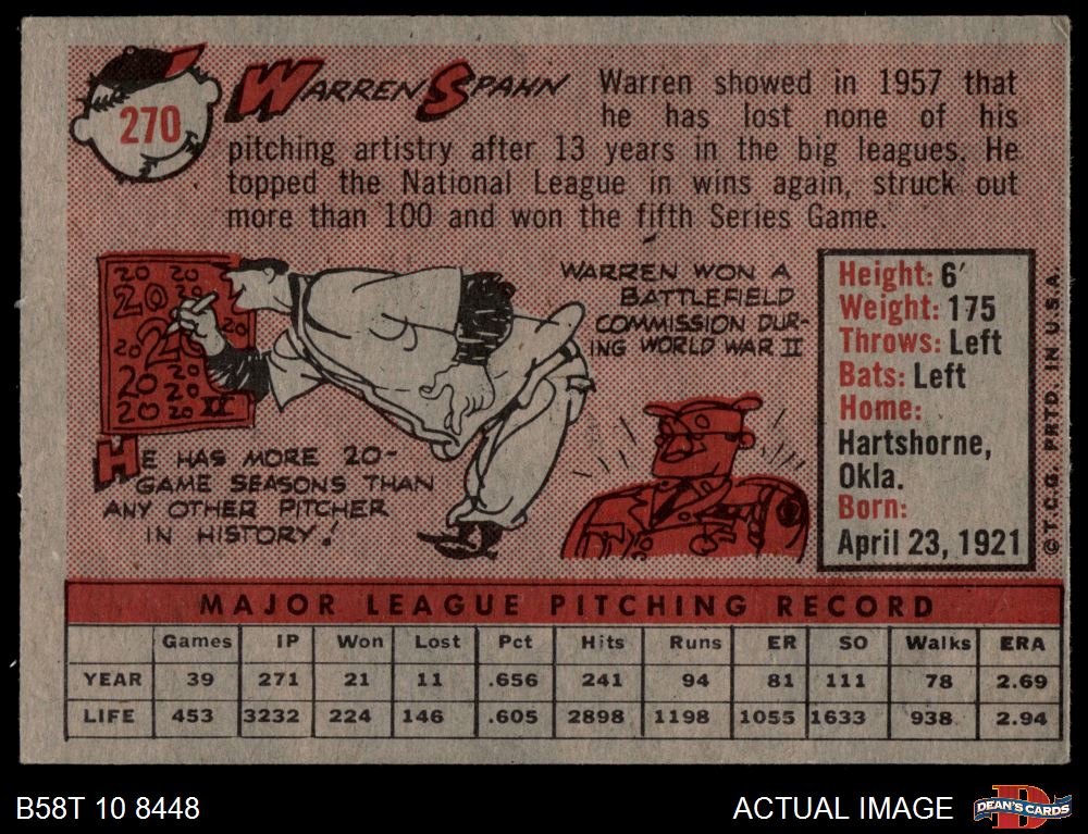 1958 Topps #270 Warren Spahn 4 - VG/EX