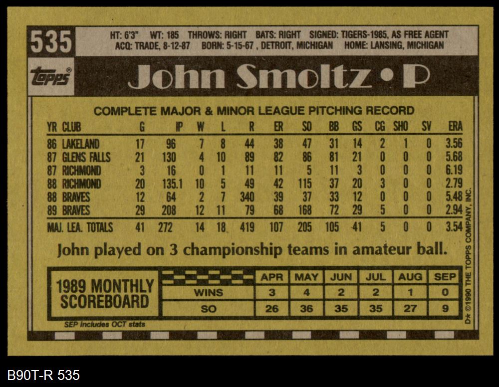 1990 Topps #535 John Smoltz