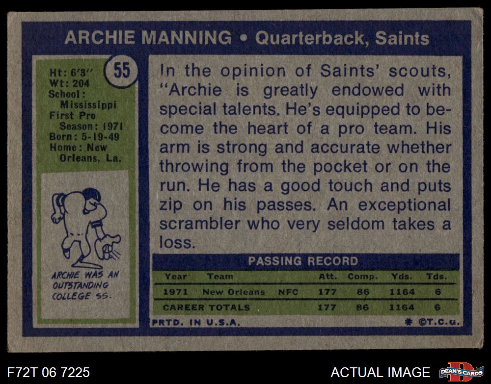 1972 Topps #55 Archie Manning 2 - GOOD