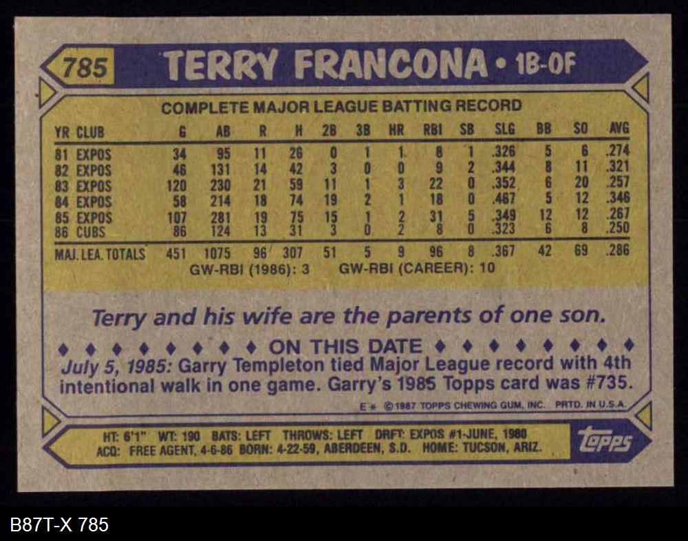 1987 Topps #785 Terry Francona