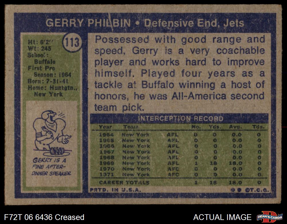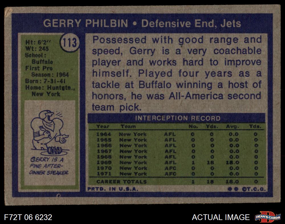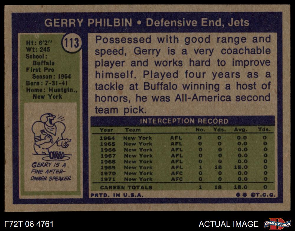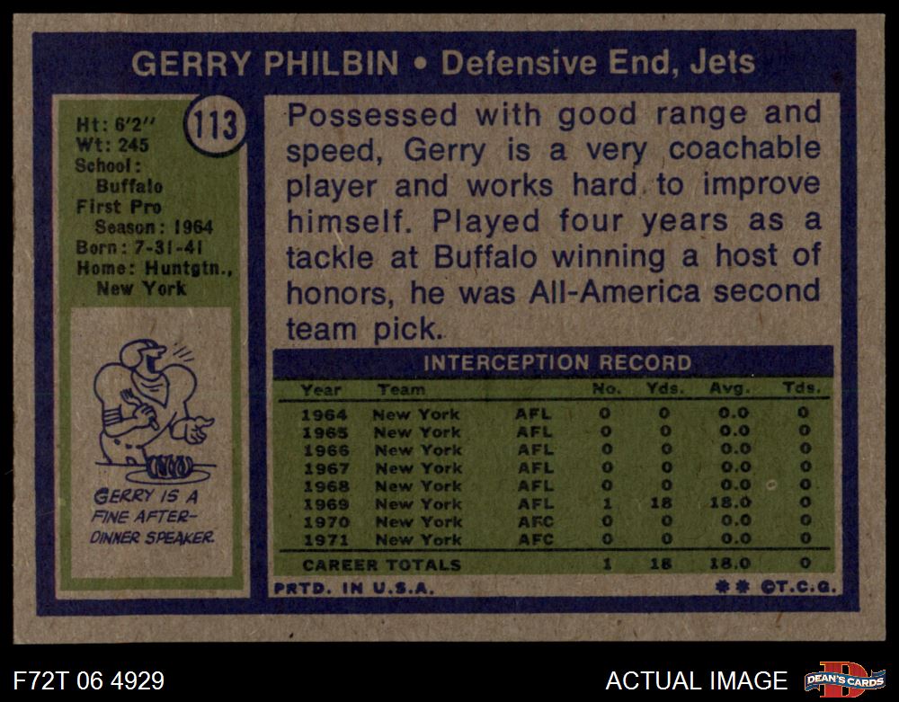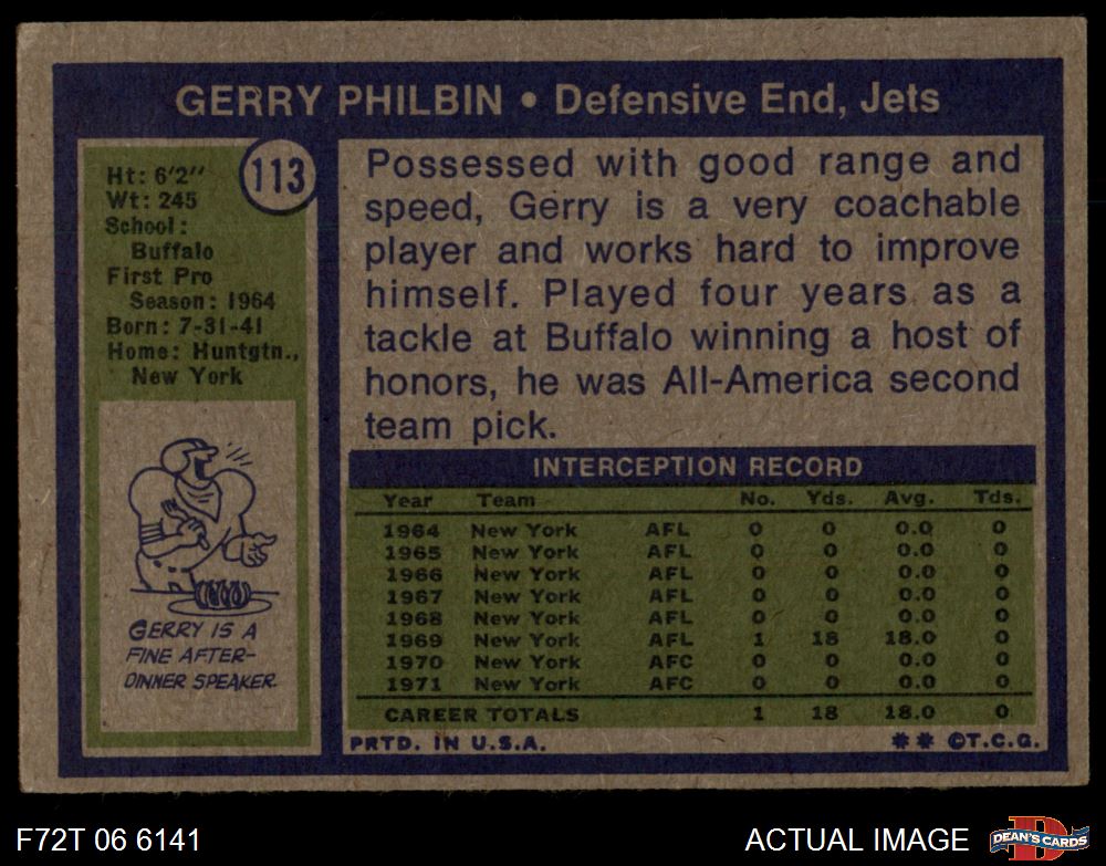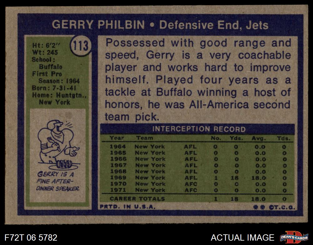1972 Topps #113 Gerry Philbin