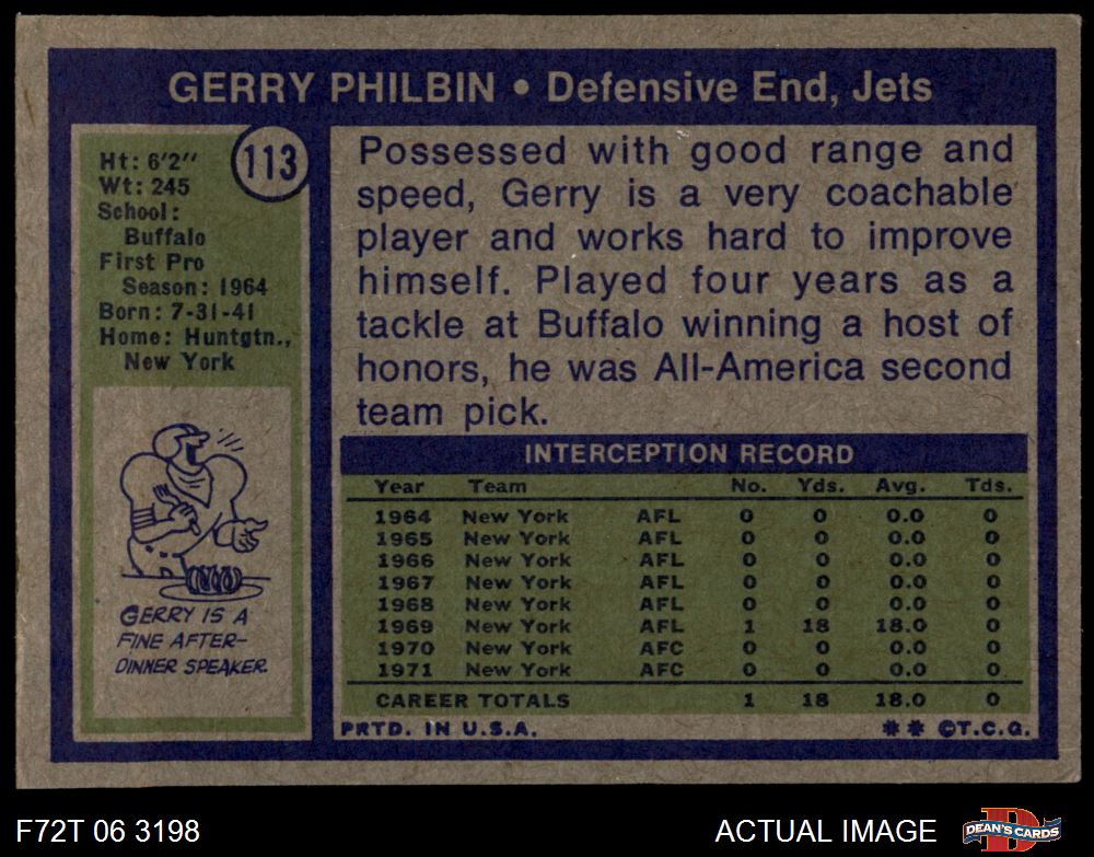1972 Topps #113 Gerry Philbin Front Thumbnail