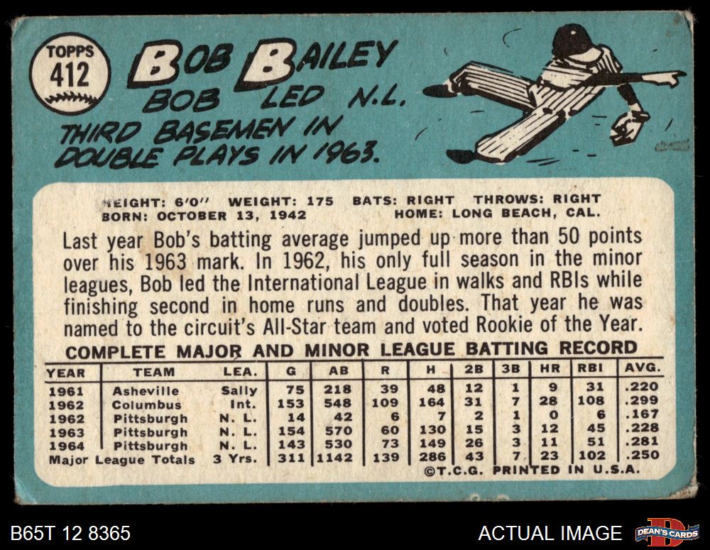 1965 Topps #412 Bob Bailey Front Thumbnail