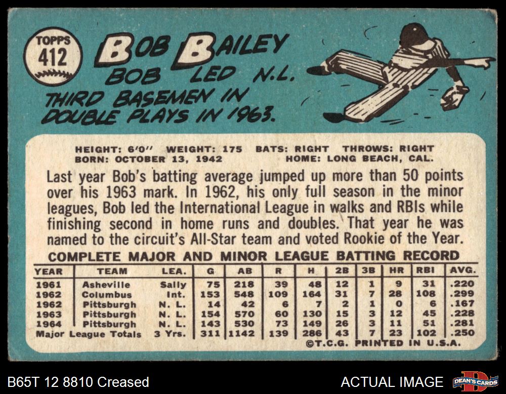 1965 Topps #412 Bob Bailey 1.5 - FAIR
