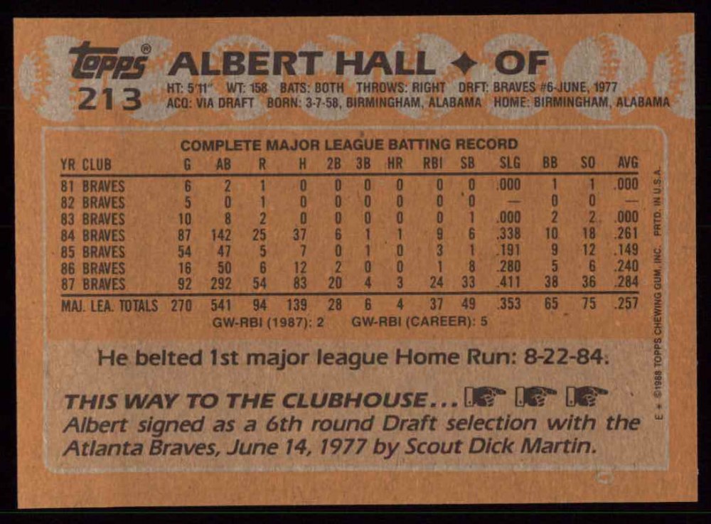 1988 Topps #213 Albert Hall