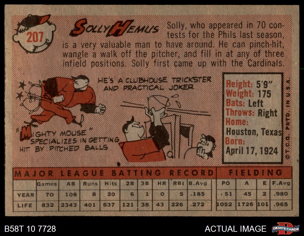 1958 Topps #207 Solly Hemus