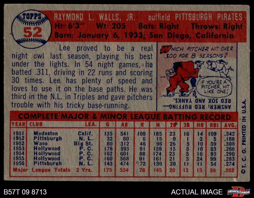 1957 Topps #52 Lee Walls 3 - VG